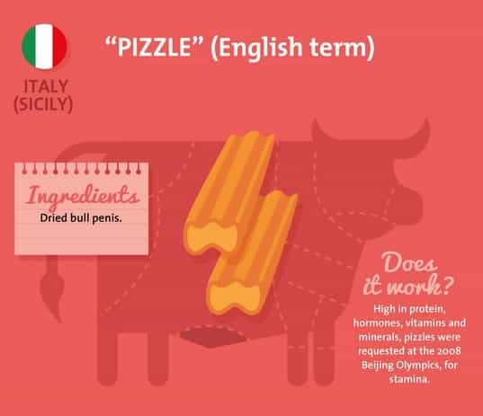 Italia: Para los italianos todo se soluciona con un pene deshidratado de toro, el que es alto en proteínas, hormonas, vitaminas y minerales.