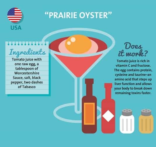 Estados Unidos: Si los gringos tienen caña, lo que hacen es mezclar jugo de tomate, un huevo crudo, salsa, pimienta negra, sal y tabasco.