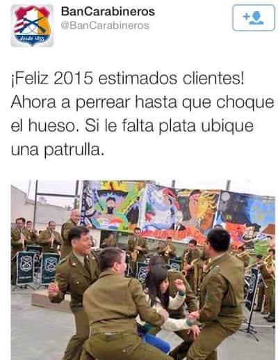 Cuenta troll de Carabineros: @bancarabineros Parece que las cuentas trolls institucionales son de las favoritas. Esta se burla de Carabineros de Chile mediante el banco ficticio BanCarabineros y su red de tajeros automáticos en las comisarías. Ofrecen interesantes promociones como un 30% de descuento en botitas para perros para nuevos clientes. Tienen más de 9 mil seguidores y siguen a menos de 500, teniendo tweets bien exitosos.