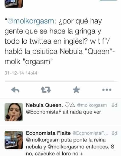 Economista Flaite: @economistaflait No sólo es un "Pe ashe de" en Economía de la Universidad de la Vida, también es un licenciado en trolleo casual. No es muy influyente pero sí es muy popular, teniendo más de 52 mil seguidores y siguiendo a 43 mil. Se puede encontrar al economista flaite trolleando a la gente que sigue y dando cátedras de Economía, que es su fuerte.