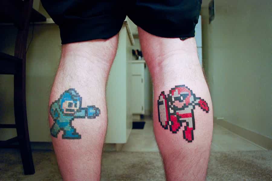 El enemigo por naturaleza del famoso héroe de Capcon llamado Megaman, es Metroid. En estos estupendos tatuajes temáticos, podemos ver a sus versiones 8bits luchando en un combate frente a frente. Eso sí, deberás invertir más luquitas si quieres un modelo como este, porque son 2 tatuajes.