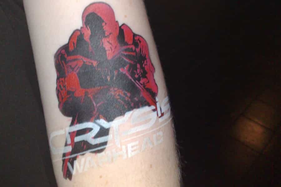 En mi caso, siempre me ha gustado jugar en consola, echada en la cama y usando la tele en vez de un monitor. Sin embargo, para quienes son gamers de PC, aman los shooters y son fanáticos de "Crysis Warhead", este tatuaje es la respuesta al diseño que andabas buscando.