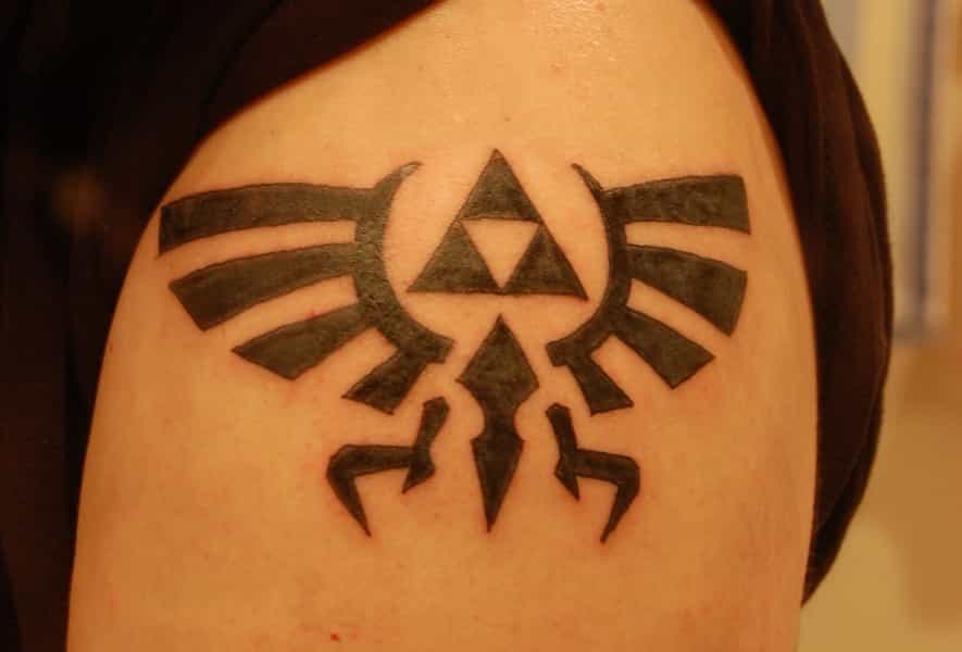 Para quienes son lo suficientemente fans de Zelda como para saber que el nombre del personaje principal es Link, un tatuaje de "Hyrule Crest" puede ser una opción a considerar. Es un diseño bastante original y solamente los que son igual o más adictos a los videojuegos que tú, entenderán su significado.