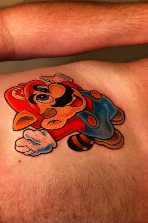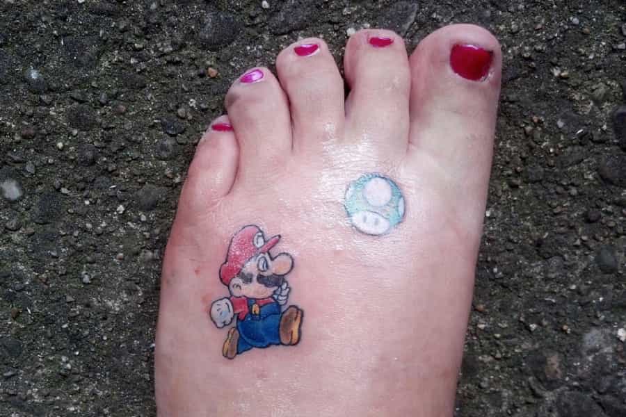 Si amas a Mario, pero no quieres un tatuaje tan grande como el de la opción número 3, este es algo más pequeño y está ubicado en un lugar menos visible. Además, aparece como personaje secundario el famoso "1 UP" o como diríamos en chilensis "el honguito verde".
