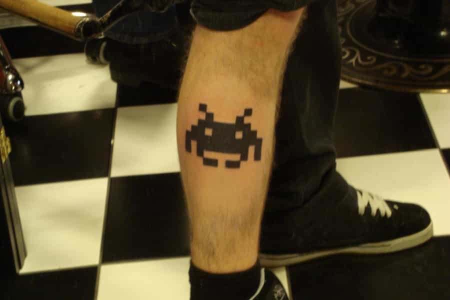 Para quienes amamos los videojuegos desde peques o quienes se han informado respecto a juegos retro, este tatuaje no les será indiferente. El personaje pertenece a "Space Invaders" (juego que podemos encontrar en la actualidad incluso para nuestro celular, si tenemos Android) que a pesar de tener una gráfica básica, a medida que ibas avanzando, se ponía más difícil que pasar la U sin echarse ningún ramo.