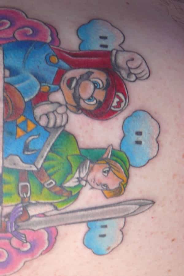 Si tienes varios títulos favoritos y no puedes decidirte por uno, también sería buena idea optar por juntar a tus personajes favoritos en un solo tatuaje. En el caso de la foto, Mario y Link son los protagonistas de esta obra de arte elaborada en tinta.