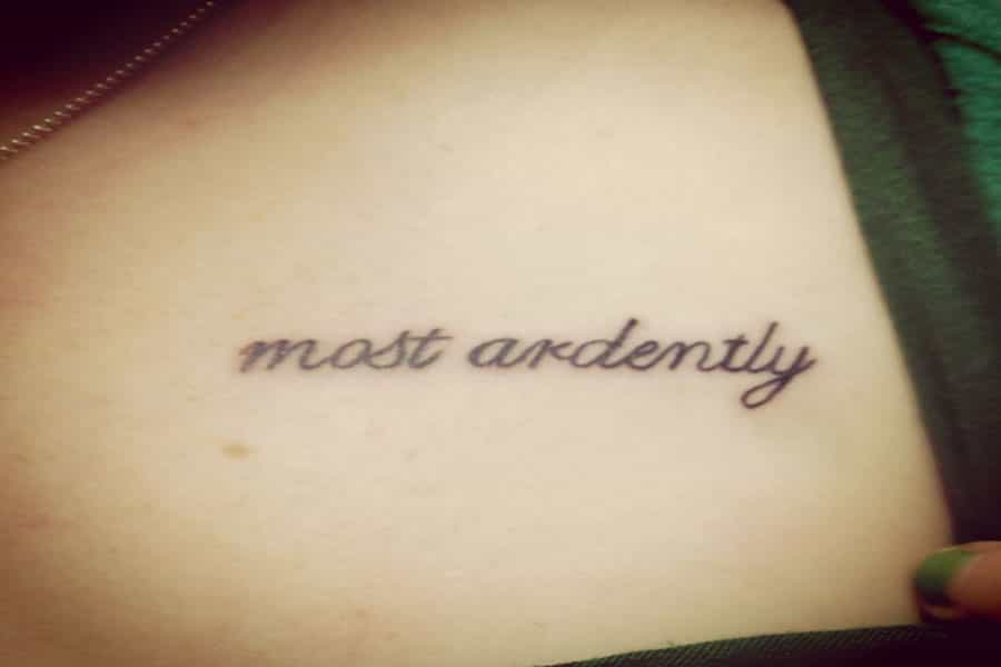 I love you, most ardently( Te amo más ardientemente) De un clásico romántico de la literatura “Orgullo y Prejucio “de Jane Austen, lo que finalmente le dice Mr. Darcy a Elizabeth.