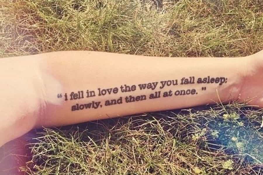 “I fell in love the way you fall asleep. Slowly, and then all at once” (Me enamore de la forma en que te quedas dormido: primero lentamente, y luego de golpe) Cita de “Bajo la misma estrella” de John Green.Otra historia romántica y además muy triste ¿Quién no sufrió con la historia de Gus y Hazel?