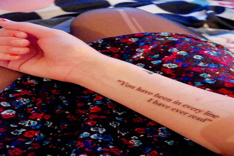 Para algunos los libros no significan nada, a otros les dejan marcas y se convierten en parte de su propia historia. Viven la vida de los personajes cada vez que releen sus libros favoritos y es por eso que algunos deciden pasar las palabras del papel a la piel para así llevarlas consigo siempre. Aquí les traemos una lista de 15 tatuajes basados en citas de libros que te encantaran y te harán pensar en hacerte uno también.