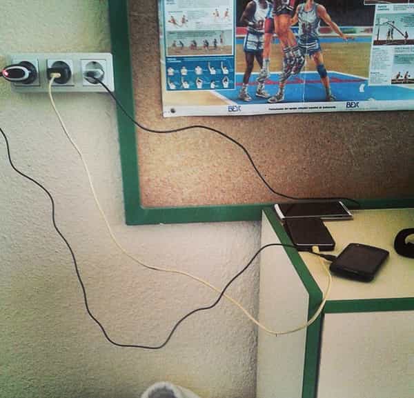 6. Que es importante sentarse lo más cerca posible del enchufe en la sala . Enserio. Conocer la estructura de todas las salas en las que tienes clases se convierte en un arte, tienes que entrar corriendo para agarrar el puesto al lado del enchufe cuando tienes que usar tu notebook o cargar tu celular. O mejor aún, llevar un ladrón a clases para compartir el enchufe… ¡o un alargador!