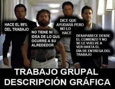 trabajo en grupo. Enserio, ¿quién inventó los trabajos en grupo? ¿El diablo? Enel colegio era lo mejor: trabajabas menos y solía significar tener una mejor nota. En la u hacer trabajos en grupo significa puro agotamiento, peleas y
