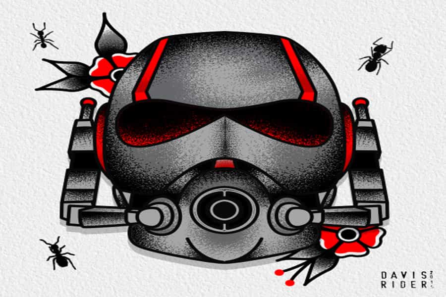 Este súper héroe que recientemente llegó a la gran pantalla, forma parte del amplio universo de Marvel Comics. Aunque pequeño en tamaño es, como varios saben, acreedor de una gran fuerza concedida por su traje (cualidades características de una hormiga). Respecto al tatuaje, este es un buen exponente minimalista que representa a la perfección del personaje.