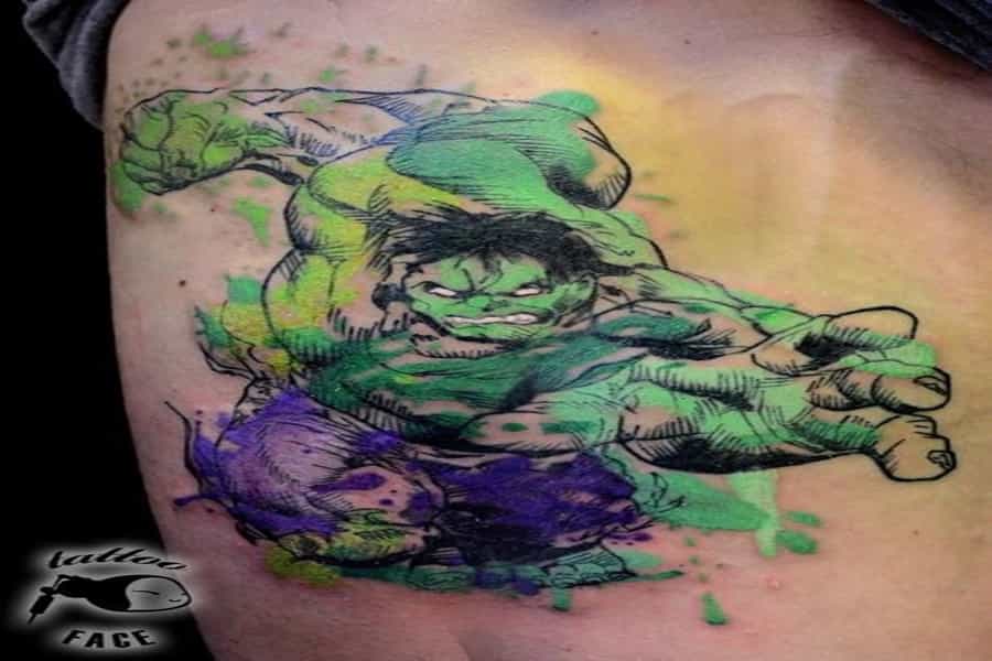 Bruce Banner es el hombre que se esconde dentro de esa gran masa de músculos verdes llamado Hulk. Es conocido como el héroe más fuerte que existe, en un título bien merecido. Cualquier tatuaje de este súper héroe que muestre sus verdosos músculos, será adecuado.
