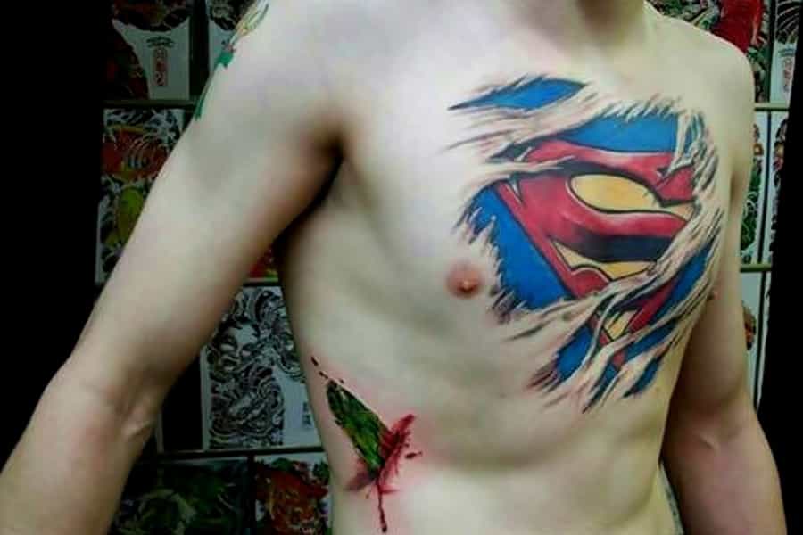 Kal-El o Klak Kent, sea cual sea el nombre por el que se opte, no se puede negar que este kryptoniano es uno o el más famoso de los superhéroes de todos los tiempos. Con una basta cantidad de tiras cómicas y adaptaciones al cine, además de series de televisión, Superman ha sido desde su creación un objeto de admiración por su noble labor en un planeta que no es el suyo. Para que hablar del tatuaje, ¿quién no querría tener el atuendo del héroe bajo la piel?.